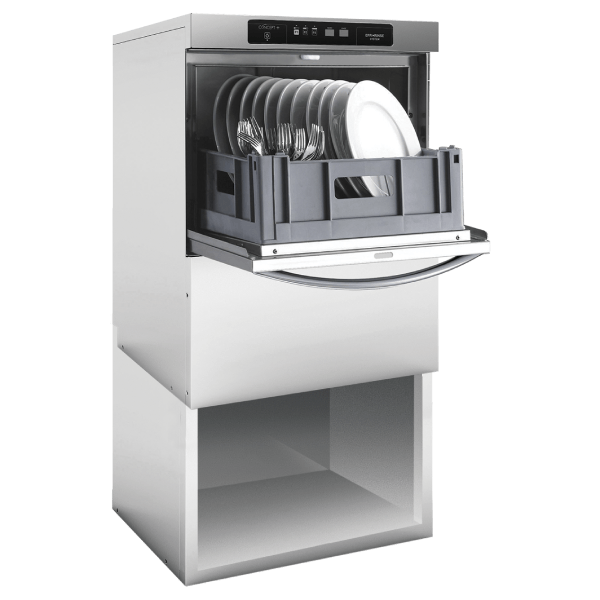 Base em aço inoxidável com as laterais e o fundo fechados, para acomodar até três gavetas vazias.
