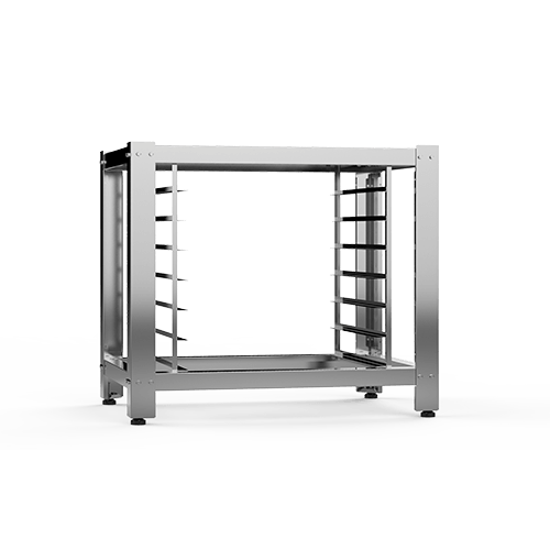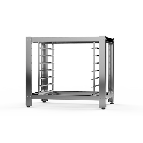 Base desmontável para forno de convecção, construída em aço inoxidável e dotada de pés com regulagem de altura.