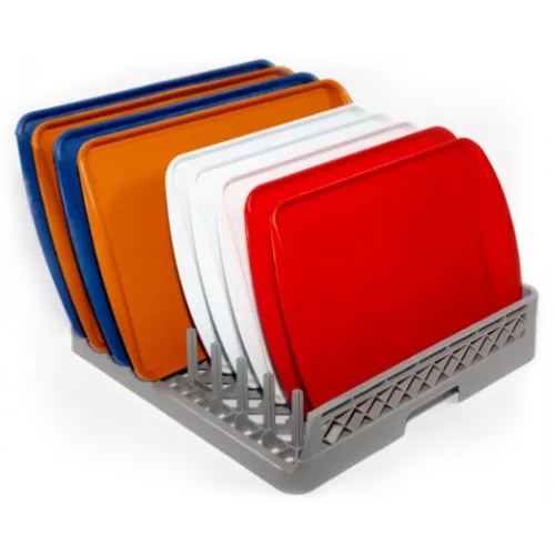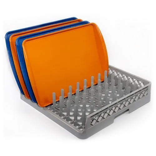 Acomoda pratos de até 27 centímetros de diâmetro e bandejas com o padrão maiores que 46 centímetros até a capacidade de área útil da câmara de lavagem da lavadora.