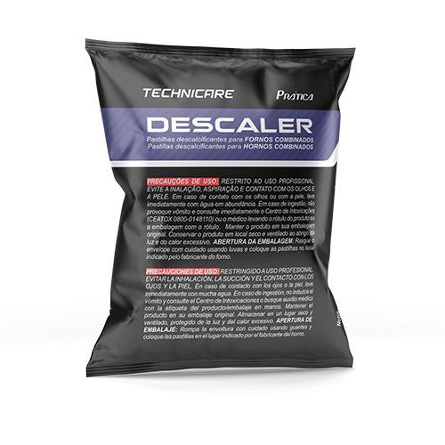 As pastilhas descalcificantes Descaler preservam a câmara de cocção dos fornos combinados TSi* e C-MAX* do acúmulo de minérios como o cálcio, provenientes de águas com dureza elevada. Essas devem ser utilizadas após a limpeza do forno, feita com as pastilhas desengordurantes Degreaser.